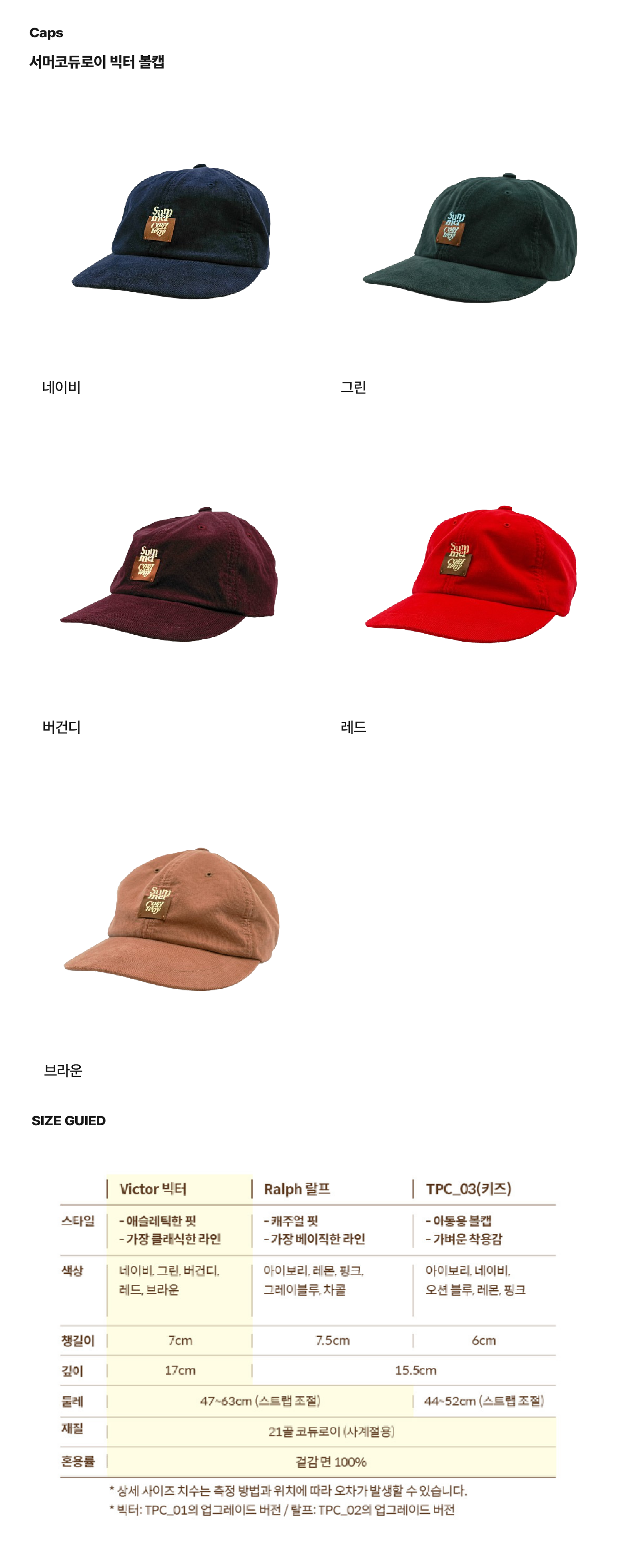 서머코듀로이 빅터 볼캡