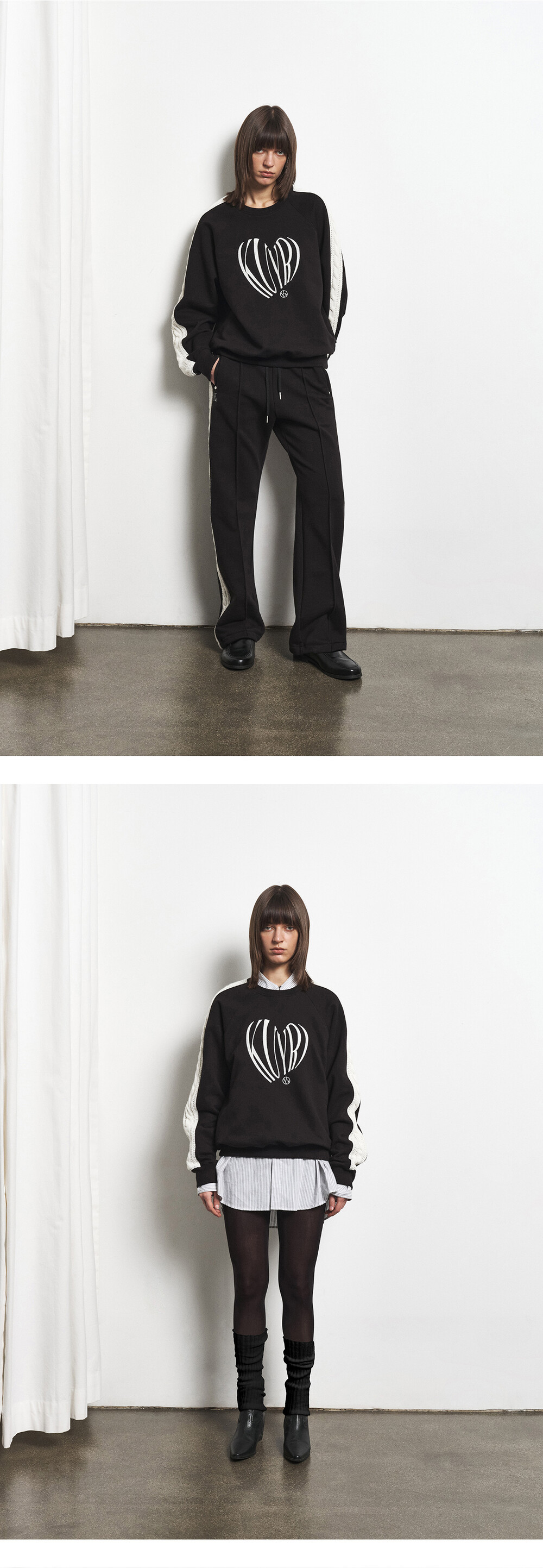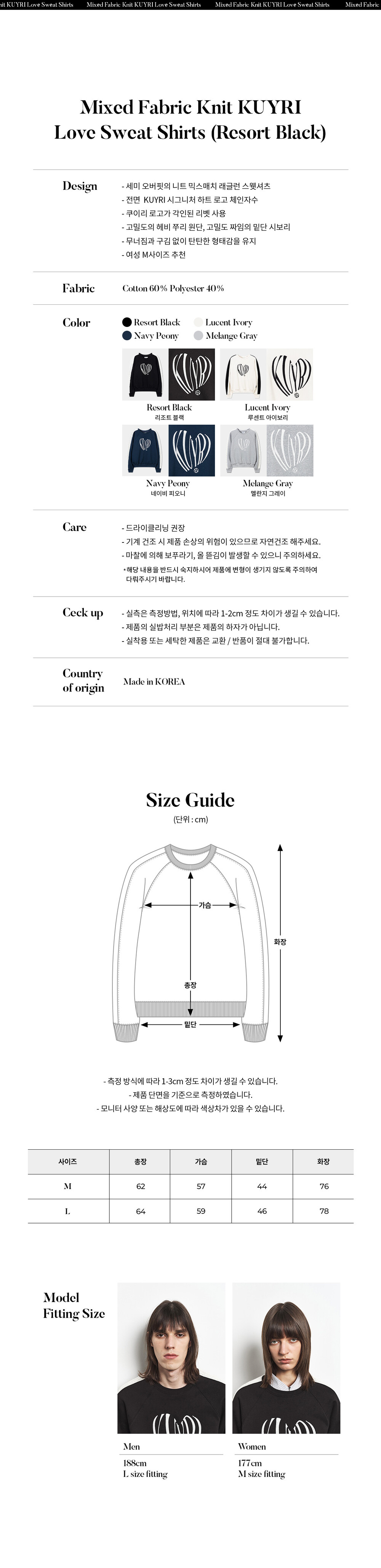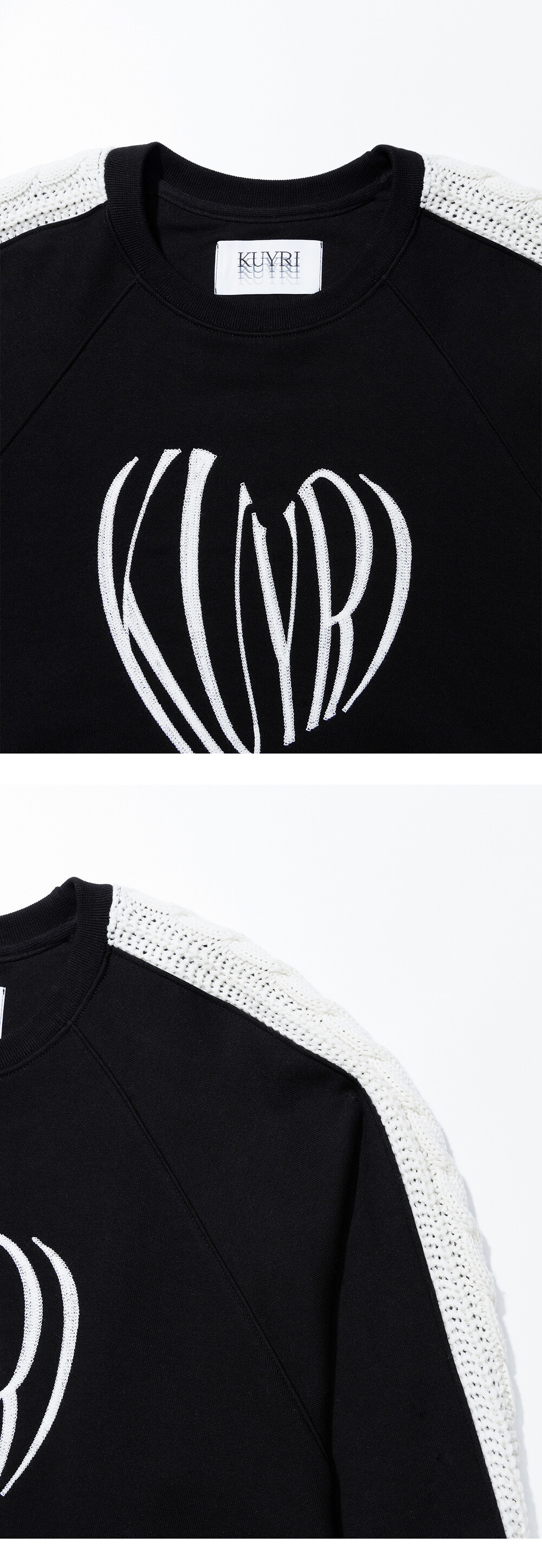 Mixed Fabric Knit KUYRI Love Sweat Shirts