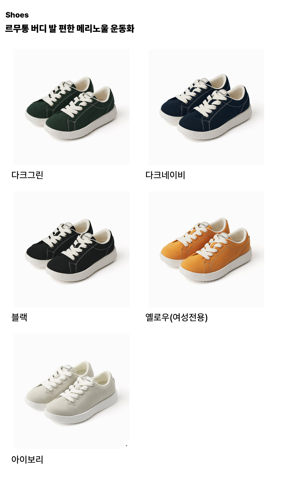 ✅ 버디(옐로우) / 메이트(라이트블루) / 스위트(모든 색상)은 여성 사이즈만 선택 가능합니다.